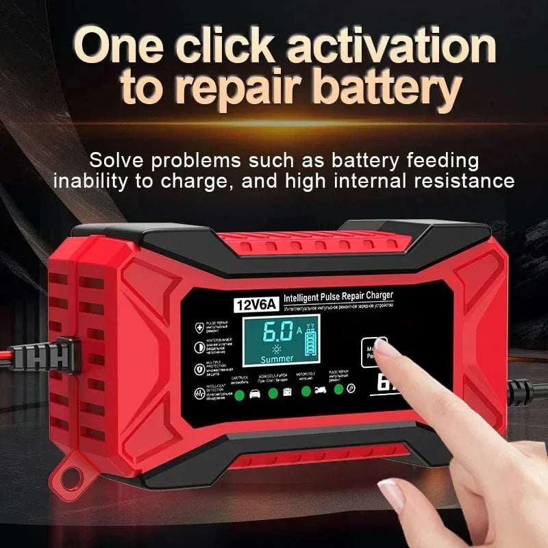 REPARACIÓN DE BATERÍAS EN UN SOLO PASO:Gracias a su avanzada tecnología de carga por pulsos, este cargador puede revivir baterías debilitadas o sulfatadas con solo pulsar un botón. Le ayuda a prolongar la vida útil de su batería sin necesidad de reemplazarla.