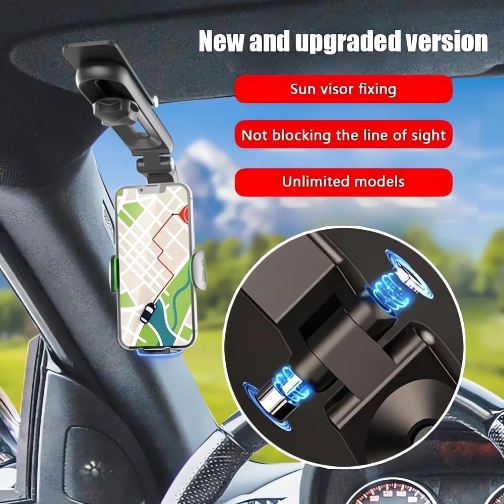 Disfruta de una vista perfecta desde cualquier ángulo con su rotación total y brazo ajustable. Fabricado en ABS y metal de alta resistencia para máxima estabilidad, incluso en caminos irregulares.Instálalo fácilmente en el retrovisor, tablero o visera sin herramientas, y mantén tu celular firme, seguro y siempre a tu alcance.